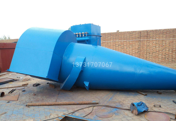 含塵氣體從進口處切向進入后,氣體在獲得旋轉(zhuǎn)運動的同時,氣流分成上、下分開,形成雙旋渦運動,粉塵在排氣底部即雙旋渦的分界處產(chǎn)生強烈的分離作用。較細較輕的塵粒由上部旋渦氣流帶往上部,在頂蓋下面形成強烈旋轉(zhuǎn)的灰環(huán),產(chǎn)生塵粒的聚集,并被從特設的旁路分離室上部洞口引出,經(jīng)旁路分離室下部螺旋槽,從除塵器外壁回風口切向引入除塵器筒體下部與內(nèi)部氣流匯合,粉塵被分離而落入灰斗。另一部分較粗重的粉塵顆粒則在下旋渦氣流帶動下,沿除塵器下段經(jīng)由上旋渦氣流的類似過程,將粉塵分離并進入灰斗。