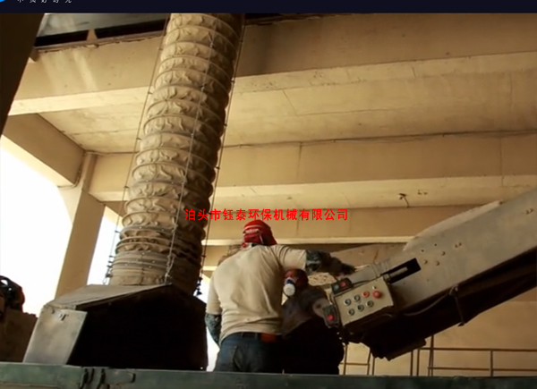 水泥廠多采用自動裝車機進行袋裝水泥裝車,來提高袋裝水泥裝車速度和工作效率,但由于皮帶機出包溜板與汽車車廂存在約1.5m左右的高差,裝車時必然造成碼包周邊揚塵,且粉塵特點范圍大、濃度低。 針對上述揚塵問題,我公司研制袋裝水泥裝車機除塵器,利用與裝車皮帶機協同作業的吸塵罩捕集揚塵,再經氣箱脈沖布袋除塵器進行過濾,從而降低大氣粉塵含量,達到我國粉塵排放標準,改善裝車工作環境。